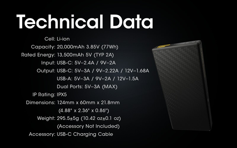 Le Carbo 20000 est une batterie externe fabriquée en carbone.
