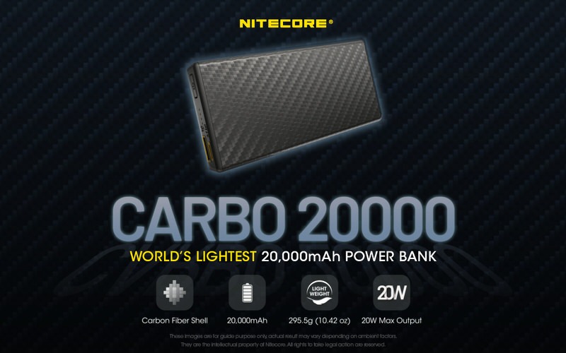 2- 1 Powerbank CARBO20000 + 1 câble Nitecore UAC20 + 1 chargeur secteur QC3A