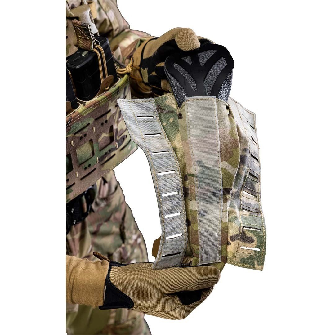 Dans la poche intérieure, en plus de l’insert en techno polymère façonné, il y a une double couche de mousse souple en polyéthylène à cellules fermées qui garantit un confort maximal, même en cas d’utilisation prolongée. Leur structure tubulaire permet l’insertion et le passage du tube du réservoir d’hydratation, de l’antenne ou des câbles de communication. Les passants du système MOLLE PALS Multi-Dot de FROG.PRO® sont placées sur les rabats intérieurs et extérieurs. Ils permettent la sortie du câble du casque dans la position souhaitée, en plus de fournir un système sûr pour l’ancrage du LPU pendant les missions maritimes. Le tissu LAHYCO, dans lequel est fabriqué le rabat extérieur, possède des fentes spéciales découpées au laser pour l’installation des boucles ITW Nexus® QASM.