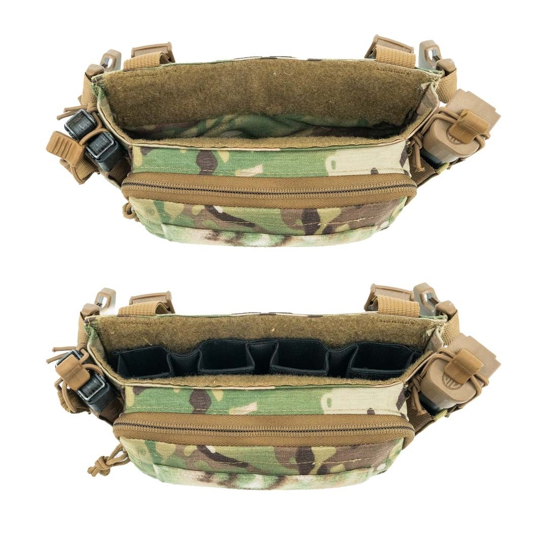 - La pochette VELCRO® doublée d’une boucle s’intègre directement à la gamme de micro-inserts (non inclus), offrant aux opérateurs des configurations personnalisées pour le transport d’un large assortiment de chargeurs, de radios et d’autres équipements essentiels à la mission. Les Micro Inserts sont disponibles en version simple 556 (avec insert MP2), double 556 (avec insert MP2), triple 556 (avec insert MP2), simple 762 (avec insert MP2), quad SMG (Sub Machine Gun/Carabine de calibre pistolet), simple Multi-Utility (pistolet/outil utilitaire) et double Multi-Utility (pistolet/outil utilitaire).