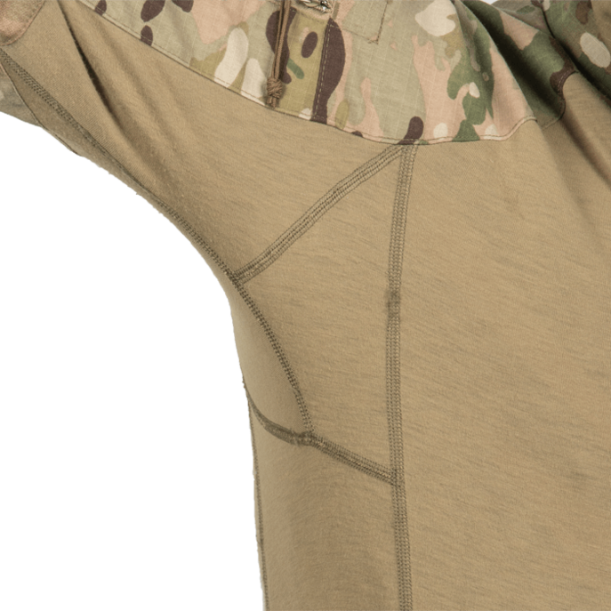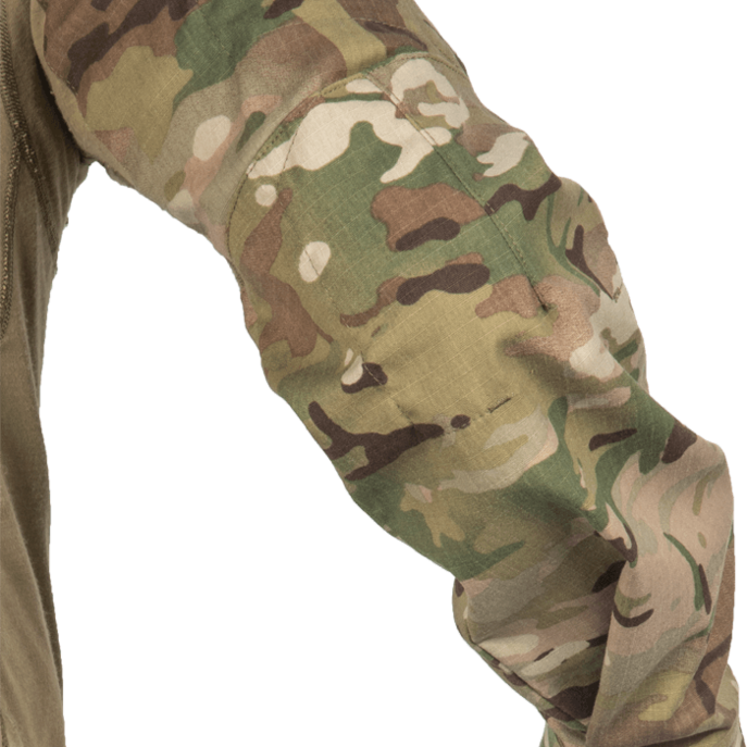 NOTRE NOUVELLE GÉNÉRATION DE VÊTEMENTS DE COMBAT EST DOTÉE D’UN TISSU VTX RIPSTOP™ extensible et personnalisé innovant . Torse construit en tissu jersey léger, haute performance et ignifuge. La fibre de nylon haute ténacité T420 d’Invista la rend plus légère et plus résistante au niveau des manches. Conçu pour être porté sous un gilet pare-balles, le stretch intégré permet une coupe plus fine avec une mobilité maximale. Les poches zippées sur les épaules sont discrètes et conçues pour réduire l’encombrement tout en laissant de la place pour tous les équipements essentiels. Col zippé pour un enfilage/retrait facile. Conçu pour être utilisé avec tous LES COUDIÈRES AIRFLEX™ amovibles (vendus séparément).