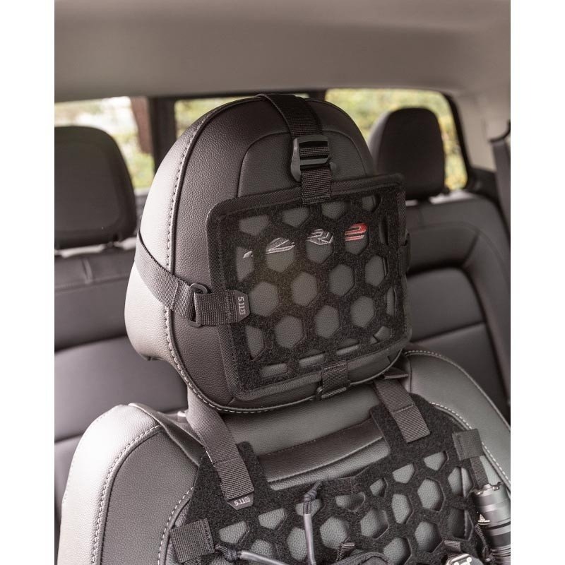 La plateforme Hexgrid® pour appui-tête de véhicule peut être rapidement installée en cas d’urgence et configurée comme un kit médical ou chargée de poches pour des accessoires de services. Cela permet un accès rapide et facile à vos équipements qui seront à portée de main. Ce panneau pour appui-tête vous fournit un support de charge multi-angles pour la disposition des accessoires et la gestion modulaire des poches. La face auto-agrippante vous permet de fixer un assortiment d’accessoires auto-agrippants ou Gear Set™. La plateforme est dotée de 2 sangles réglables et amovibles pour s’adapter à différentes formes d’appui-tête.