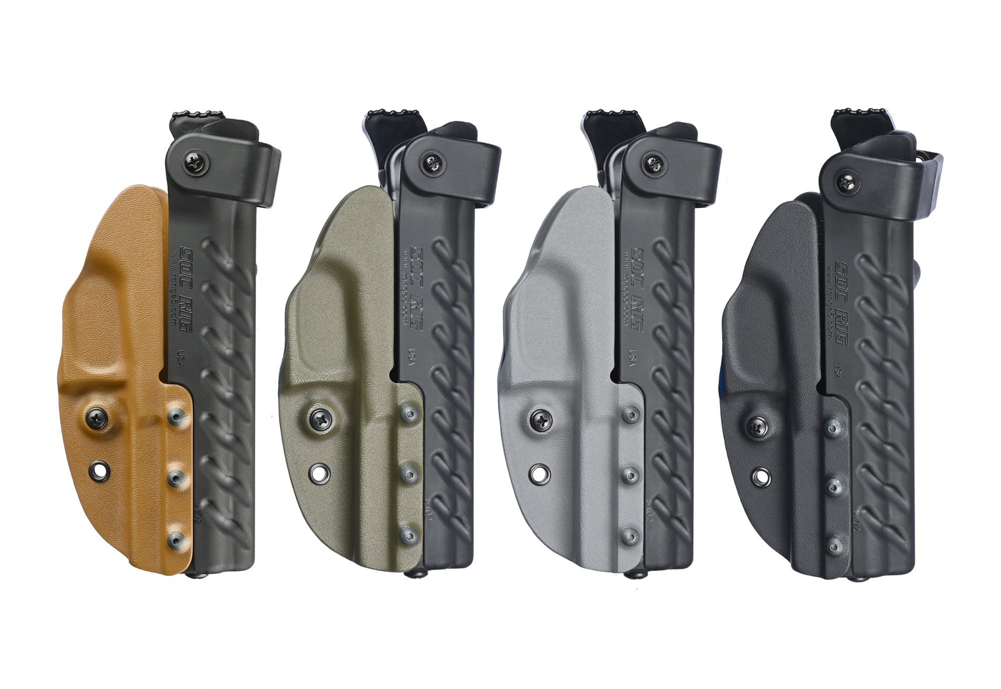 La possibilité de changer le capot inférieur permet d’acheter un étui pour le pistolet seul ou des capotages supplémentaires permettent d’utiliser diverses combinaisons de lumière montée sur arme.