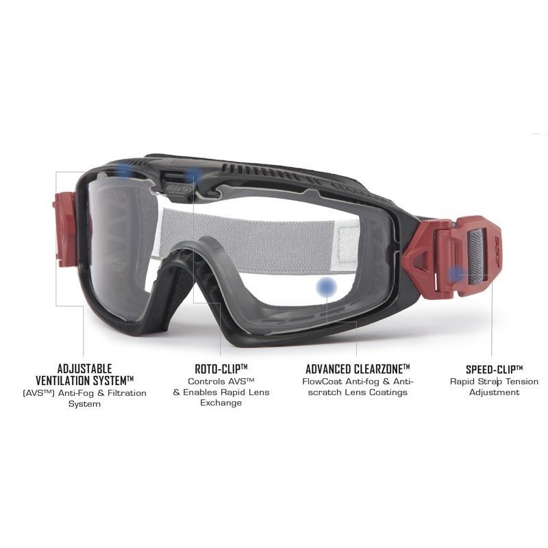 Masque de protection balistique pour lutter contre les incendies avec un système de ventilation et de filtration réglable (AVS™). Le système Speed-clip™ facilite le réglage de la sangle, même avec des gants et tous les composants du masque sont résistants à la chaleur et aux flammes, y compris le rembourrage facial. Le système Roto-Clip™ autorise une bascule discrète de l’écran dans le masque pour choisir le mode entièrement scellé sans poussière ou un mode pleine ventilation antibuée. En éliminant la buée et les particules, il assure aux sauveteurs de conserver une vision opérationnelle complète dans des environnements extrêmes.