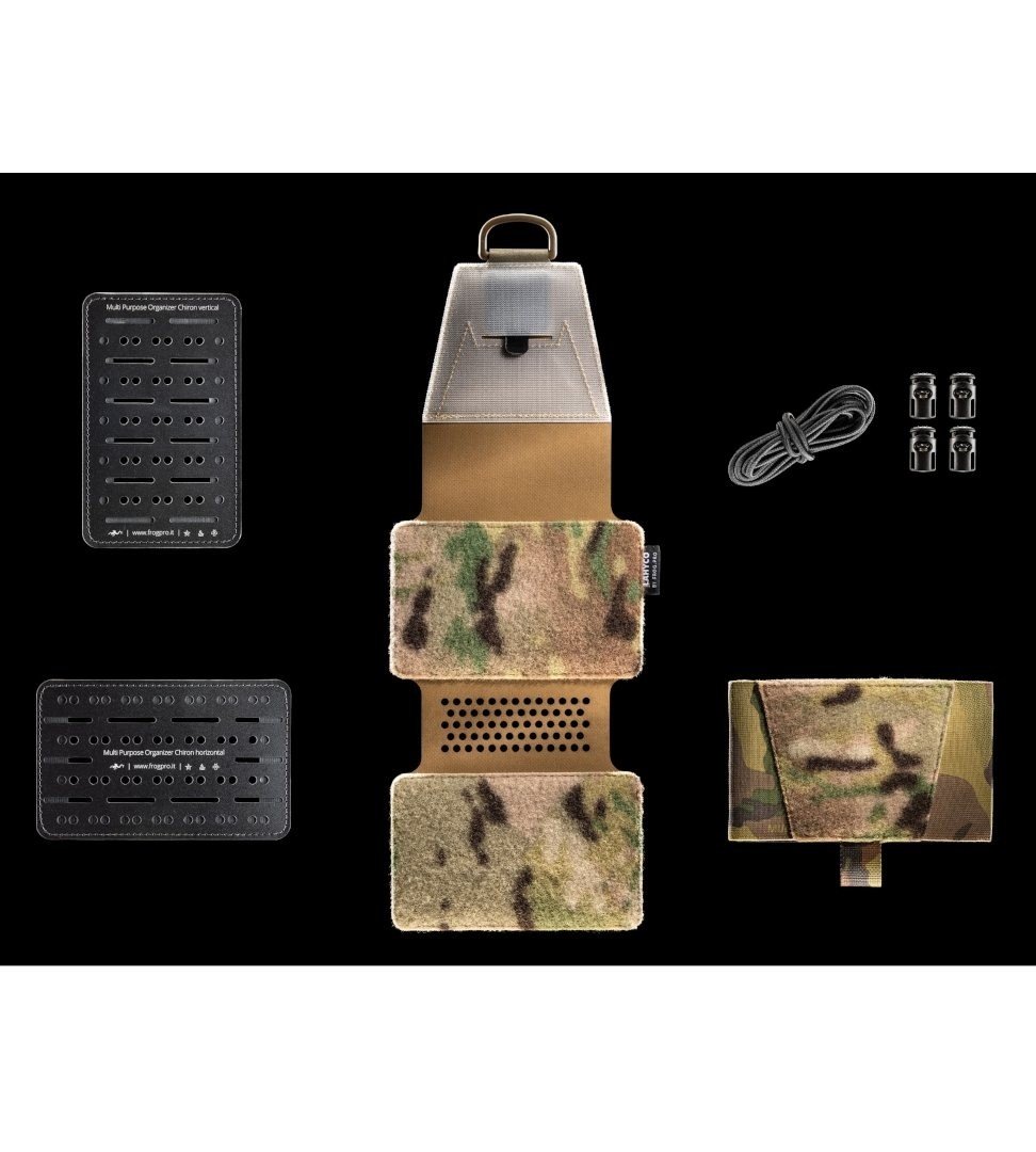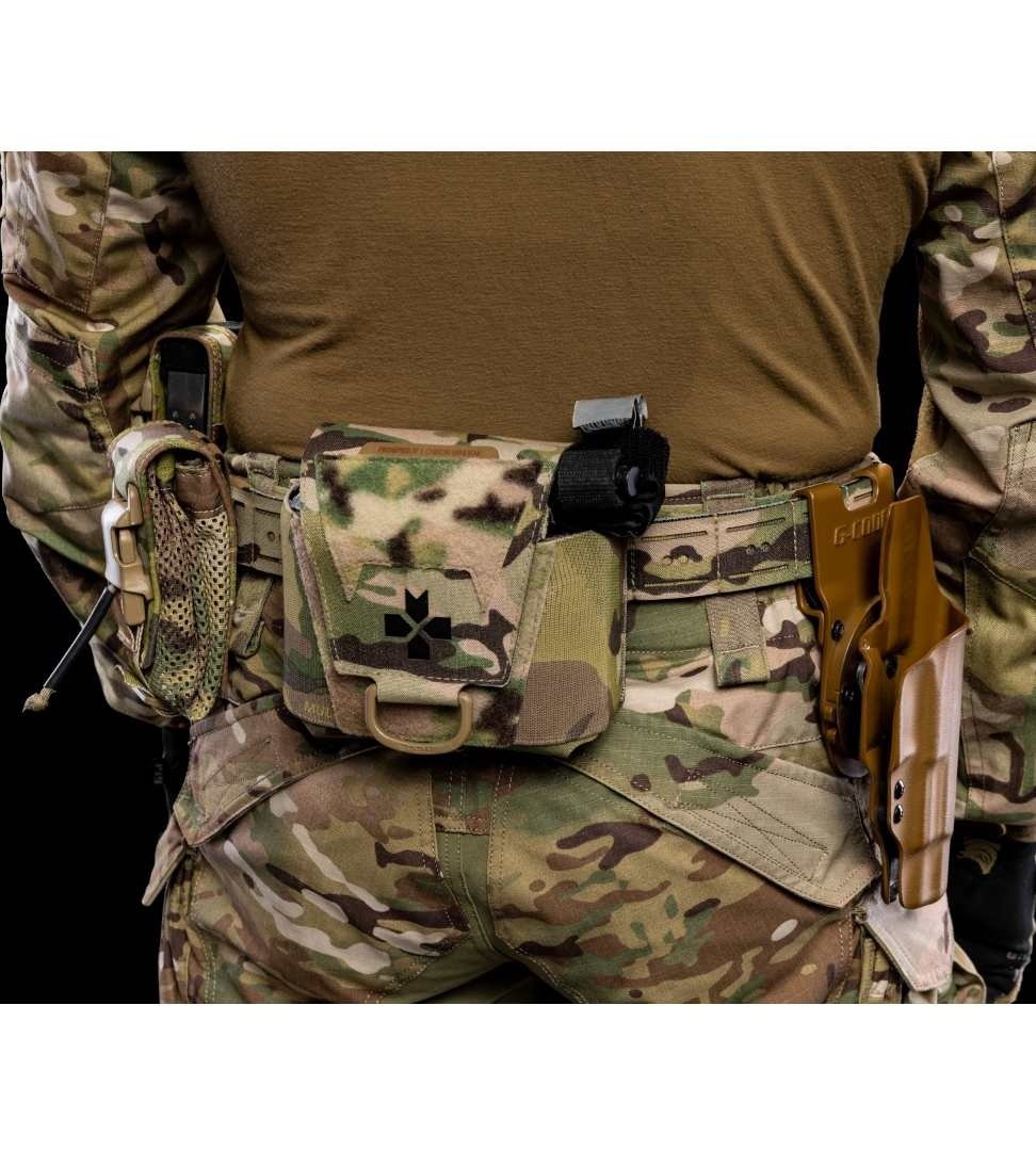 * Parce que FROG.PRO a voulu minimiser la taille de la pochette et que la plupart des opérateurs portent le garrot à l’avant de la ceinture, elle ne comporte pas de système de rétention spécifique pour celui-ci. Au besoin, le Chiron Mini IFAK peut être équipé en option du support élastique à velcro pour garrot CAT