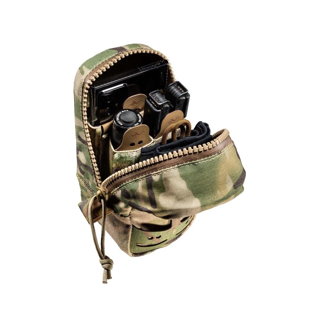 L’intérieur est recouvert de Velcro®, ce qui permet d’organiser le contenu de la pochette en utilisant différents types d’inserts. Tels que SMG Mag Velcro Insert, 5.56 Mag Velcro Insert, etc. et/ou des panneaux Multi Purpose Organizer (Multi Purpose Organizer Chiron vertical) afin de toujours trouver ce que l’on cherche.