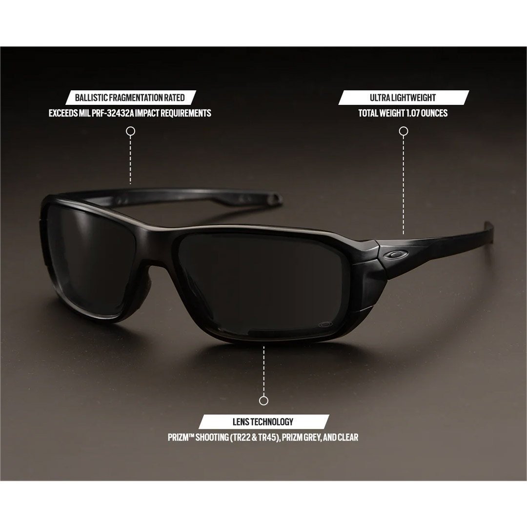 Les lunettes SI Ballistic HNBL possèdent un design à profil bas et la facilité de remplacement des verres vous permet de passer de manière transparente du service au hors-service. Les lunettes HNBL sont optimisées en répondant aux normes d’impact élevé de Mil Spec 32432A et ANSI Z87.1. La monture présente un design léger et très enveloppant avec des branches fines et des icônes moulées. Tous les verres solaires sont dotés de la technologie Oakley High Definition Optics (HDO®) et répondent aux exigences en matière d’impact, de masse élevée et de haute vélocité. Le design de la monture est également adapté aux lentilles de prescription industrielles. Elles sont fournies dans un kit rigide comprenant 3 paires de verres : clairs, TR45 et TR22.