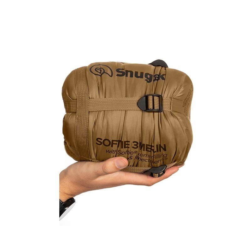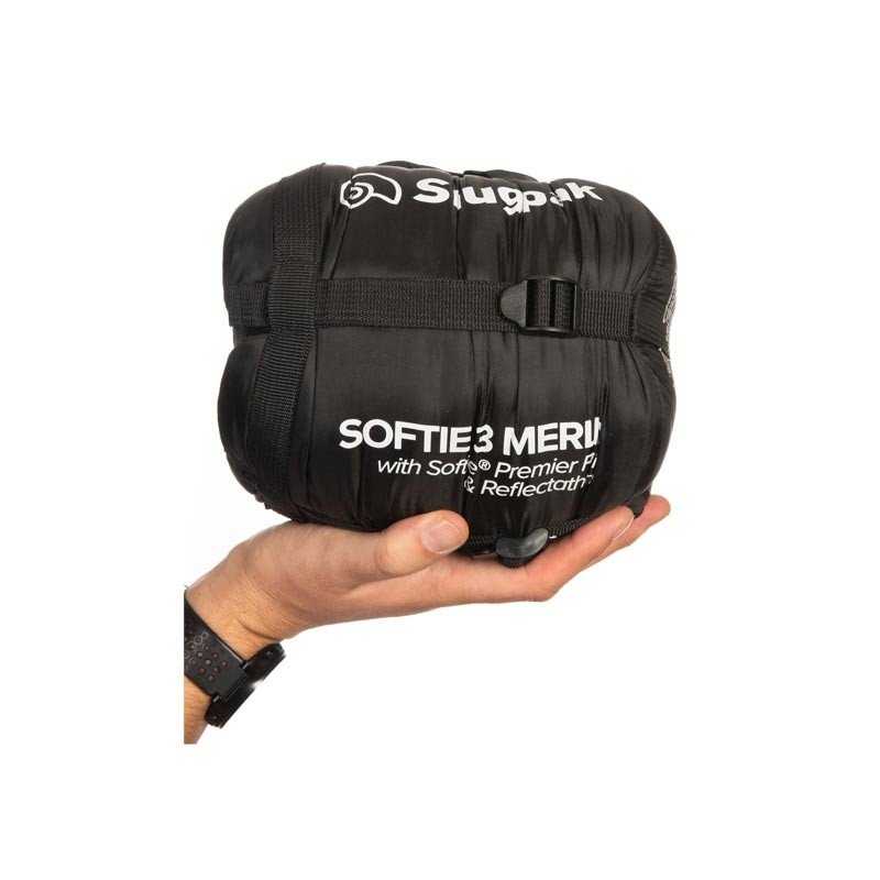 De forme « sarcophage », le haut du duvet rembourré et confortable tient à la manière d’une capuche. Le Softie® 3 possède une bande de tissu cousue sous la fermeture afin d’éviter tout accrochage et faciliter la fermeture ou l’ouverture du zip. Un rabat interne vient isoler la fermeture pour emprisonner la chaleur. Le fond du sac est renforcé pour garder ses chaussures à l’intérieur. Deux anneaux permettent de bien maintenir le sac de couchage dans un sur-sac étanche ou aider à le suspendre pour le ventiler ou le faire sécher. Solide, respirant et déperlant, il est incroyablement léger dans un sac à dos, ce qui le rend parfait pour les randonnées de longue durée.