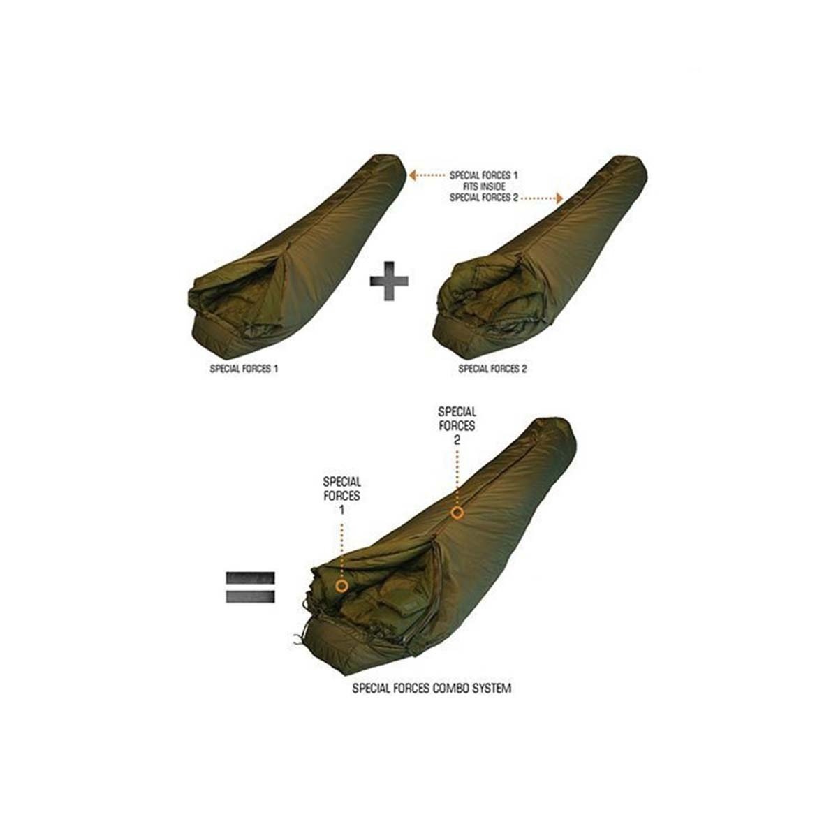 Ensemble polyvalent de 2 sacs de couchage pour s’adapter en fonction des conditions climatiques ou de la mission. Le fond des sacs renforcés est adapté pour une utilisation professionnelle ou militaire pour y dormir avec ses chaussures. Il comprend le sac Special Forces 1 qui s’intègre dans le sac Special Forces 2 avec un Zip Baffle pour les jumeler. La combinaison du Softie® et du tissu Reflectatherm procure une forte isolation en piégeant la chaleur. La fermeture Éclair centrale permet une sortie rapide du duvet.