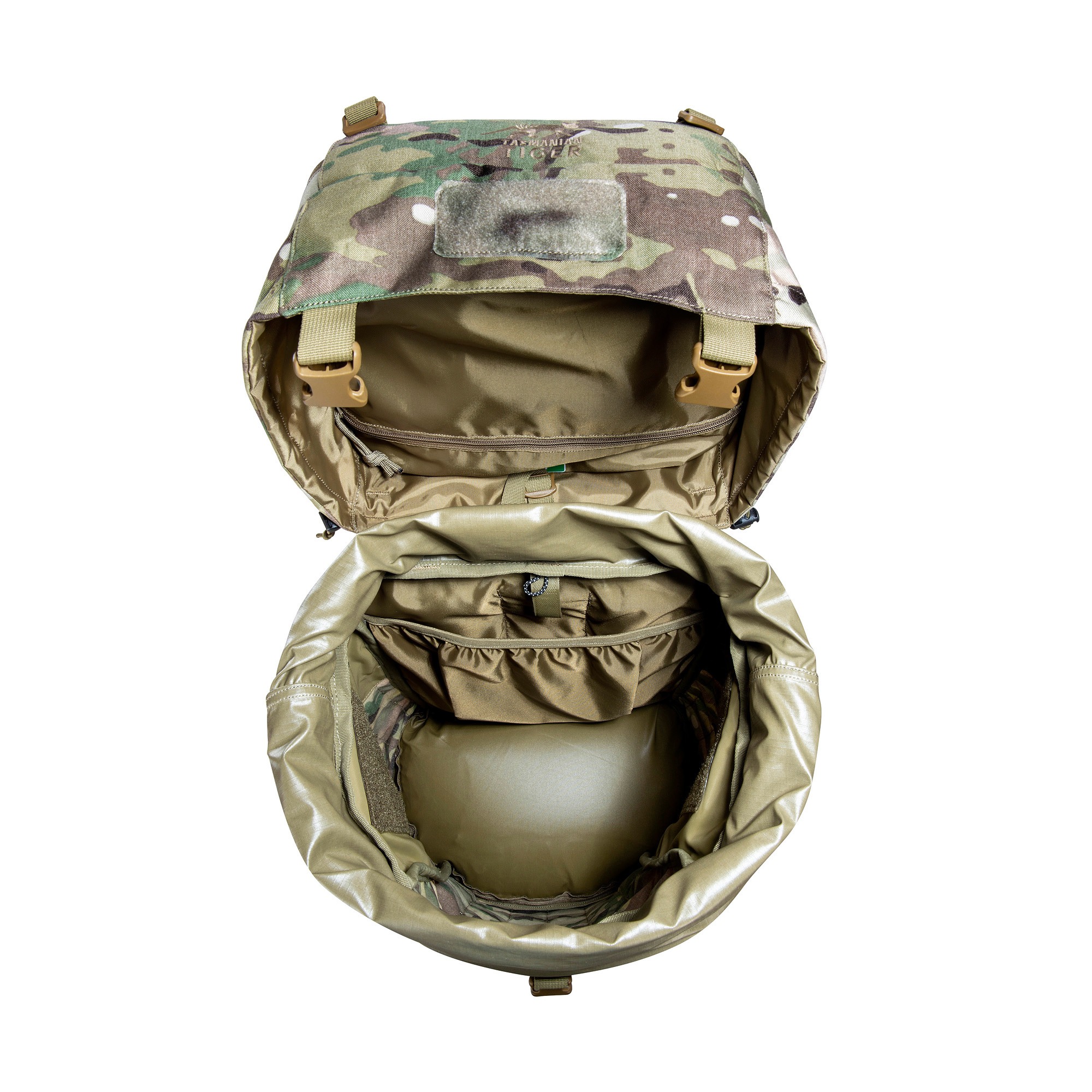 Le TT Base Pack 52 offre un volume de 52 litres et est extensible jusqu’à 65 litres. Il est équipé d’un système de portage V2 Plus haute performance et d’un couvercle amovible et réglable en hauteur. Lorsqu’il est utilisé sans couvercle, le sac à dos se ferme grâce au pare-neige enroulé. Des attaches MOLLE sont présentes à l’avant et sur les côtés. La ceinture abdominale est amovible et peut être utilisée séparément comme ceinture Warrior.