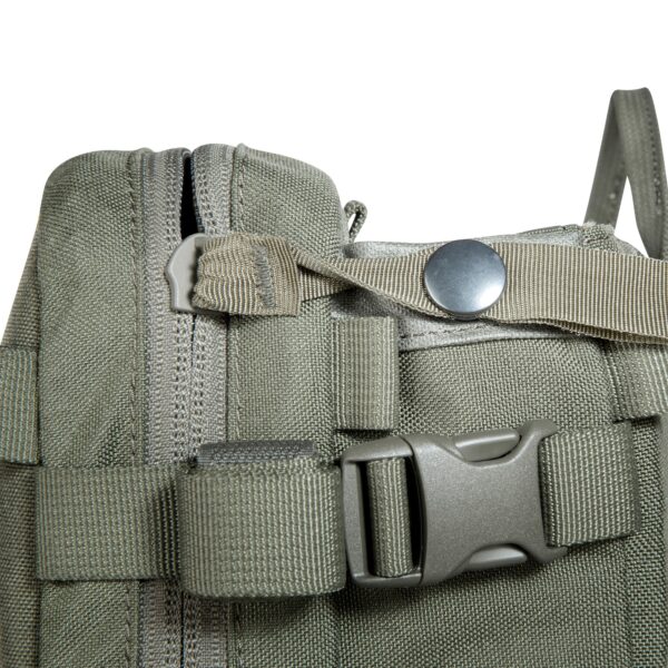 Le sac TT Breacher comprend un compartiment principal avec deux tubes porte-outils amovibles, extensibles vers le bas pour ranger de longs coupe-boulons. Le compartiment avant, entièrement zippé, s’ouvre complètement. Il est doté de poches élastiques amovibles pour les explosifs et de poches intérieures en filet pour les petits objets.