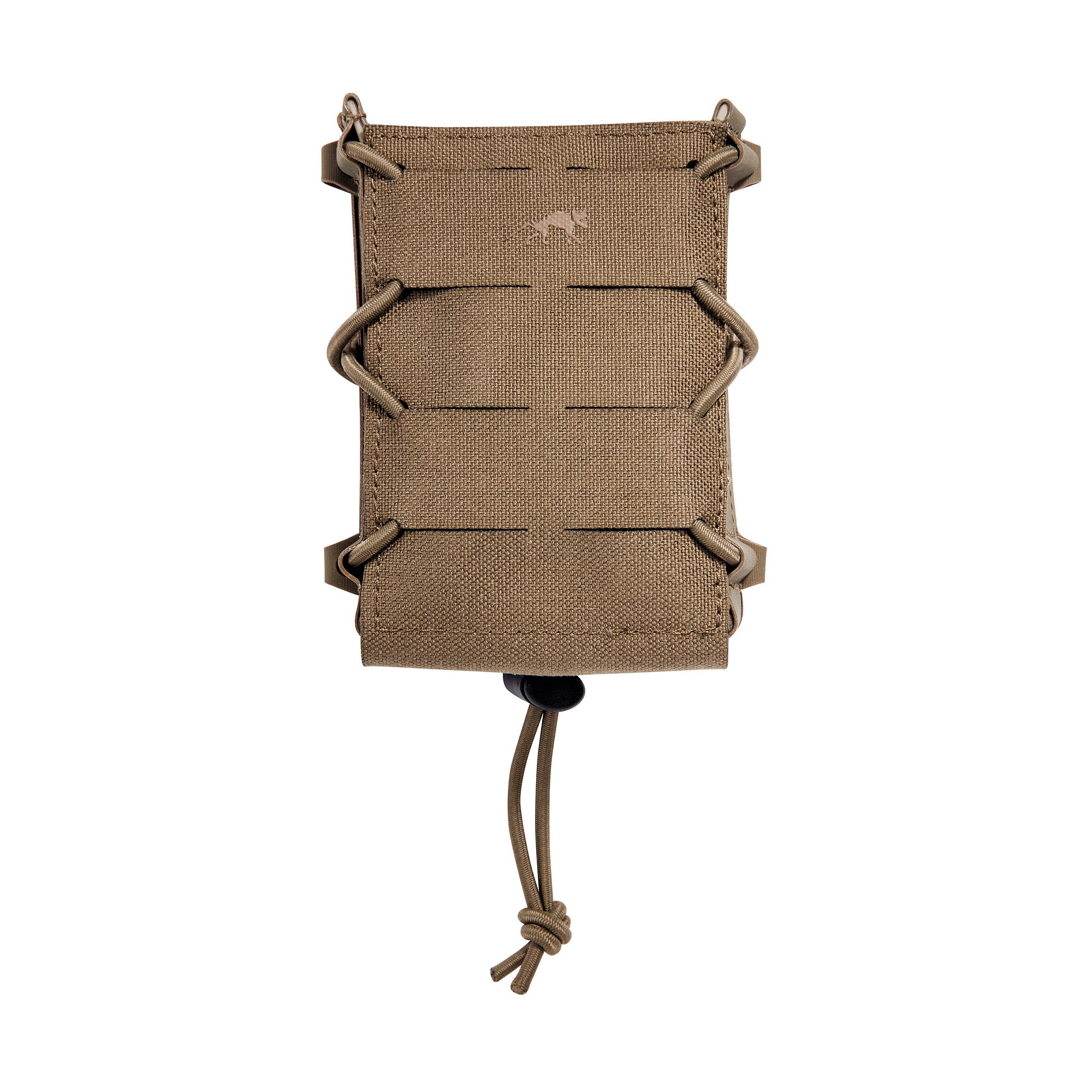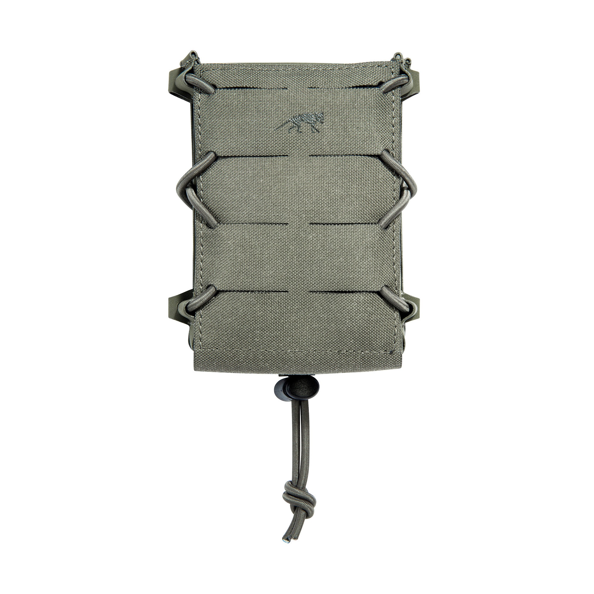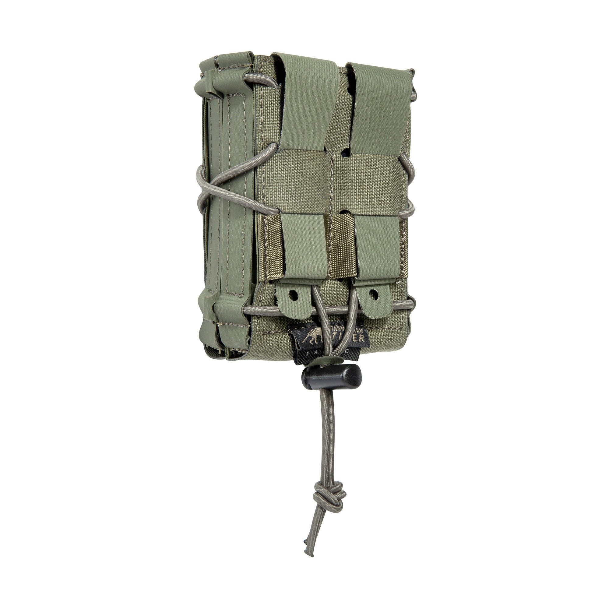 Pochette courte ouverte multicalibre pour deux chargeurs. La pochette est compressible grâce à un cordon élastique.