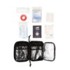 Trousse de premiers secours remplie pour un usage quotidien et pour une personne. La trousse est équipé d’une poignée et le compartiment principal est divisé.