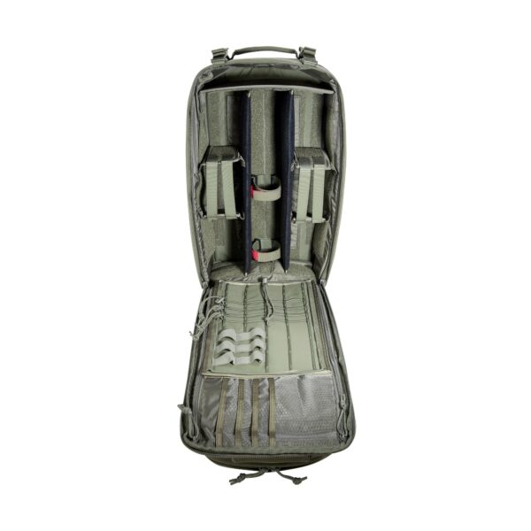 Sac à dos médical mince avec sac frontal amovible et division intérieure fonctionnelle. La version MK III du sac à dos d’urgence de Tasmanian Tiger, qui a fait ses preuves, est dotée de séparations à boucles et à crochets qui permettent un aménagement intérieur encore plus flexible, de sorte que le sac à dos peut également être optimisé pour le transport d’une bouteille d’oxygène, par exemple. Les panneaux amovibles peuvent être remplacés par les panneaux TT SRPP légers et robustes (articles 8834, 8835).