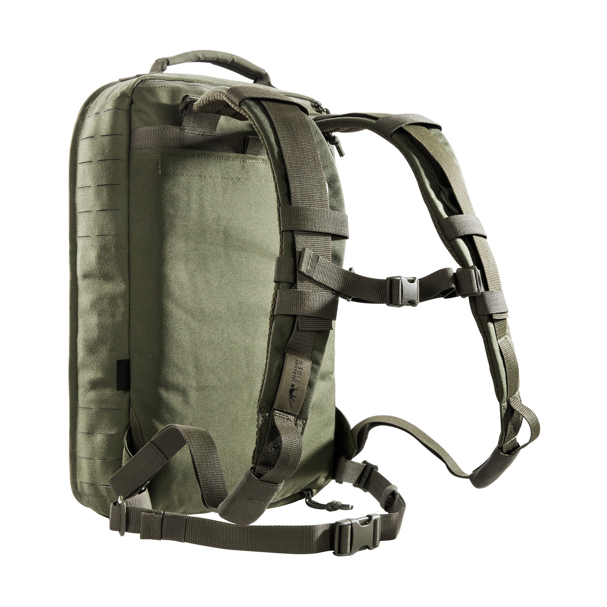 Le TT Medic Assault Pack L MKII est la troisième taille du sac à dos médical éprouvé de Tasmanian Tiger. Il est environ 4 cm plus profond (une bande MOLLE) que les deux modèles plus petits. Il est doté de sangles MOLLE découpées au laser à l’avant et sur les côtés. Le fond est équipé d’attaches pour couverture de survie. Les bretelles légères et rembourrées sont amovibles et se rangent dans une poche arrière à scratch. Le sac à dos peut également accueillir un porte-plaques et un gilet grâce aux sangles fournies. Des poignées de transport escamotables permettent un transport rapide en cas d’urgence.
