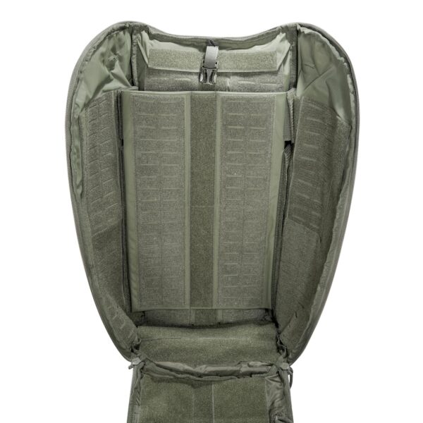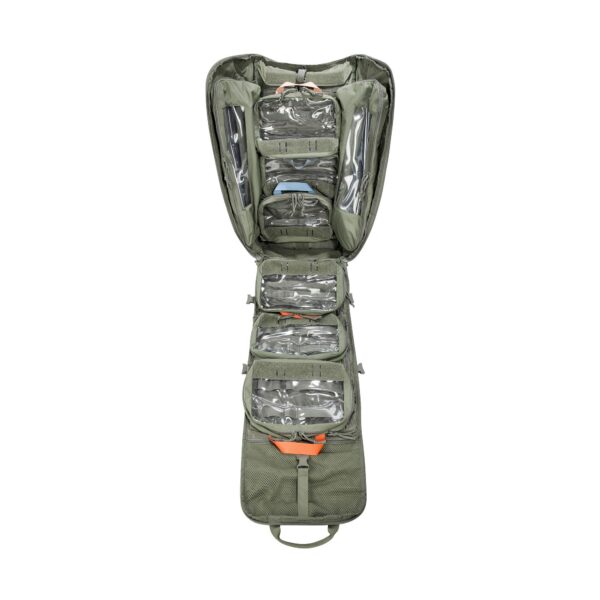 Le sac à dos TT Medic Platoon, équipé du système de transport haute performance V2 Plus, offre un volume de 57 litres (52 litres dans le compartiment principal, 5 litres dans le compartiment du couvercle). Ce dernier est équipé de huit poches transparentes à fermeture auto-agrippante, mais des zones auto-agrippantes MOLLE permettent également un assemblage individuel. Le couvercle est amovible. Le compartiment principal s’ouvre entièrement et le sac à dos peut être suspendu pour faciliter le retrait du matériel. L’avant et les côtés sont dotés de la technologie MOLLE pour une extension individuelle, et la ceinture abdominale amovible peut être utilisée séparément comme ceinture de guerrier.