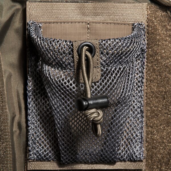 Pochette en filet pour le matériel médical, ou autres petits accessoires, avec fixation Velcro®.