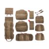 Deux poches basiques se placent au milieu, tandis que deux poches longues et deux poches courtes se placent sur les côtés. Un séparateur amovible est doté de poches plus petites. Le kit de boucles élastiques pour bandages et accessoires peut être fixé à tous les panneaux auto-agrippants. L’insert TT Modular Medic 30 VL est idéal pour équiper le sac à bandoulière modulaire TT (article 7174), mais toutes les pièces ne seront pas utilisées.