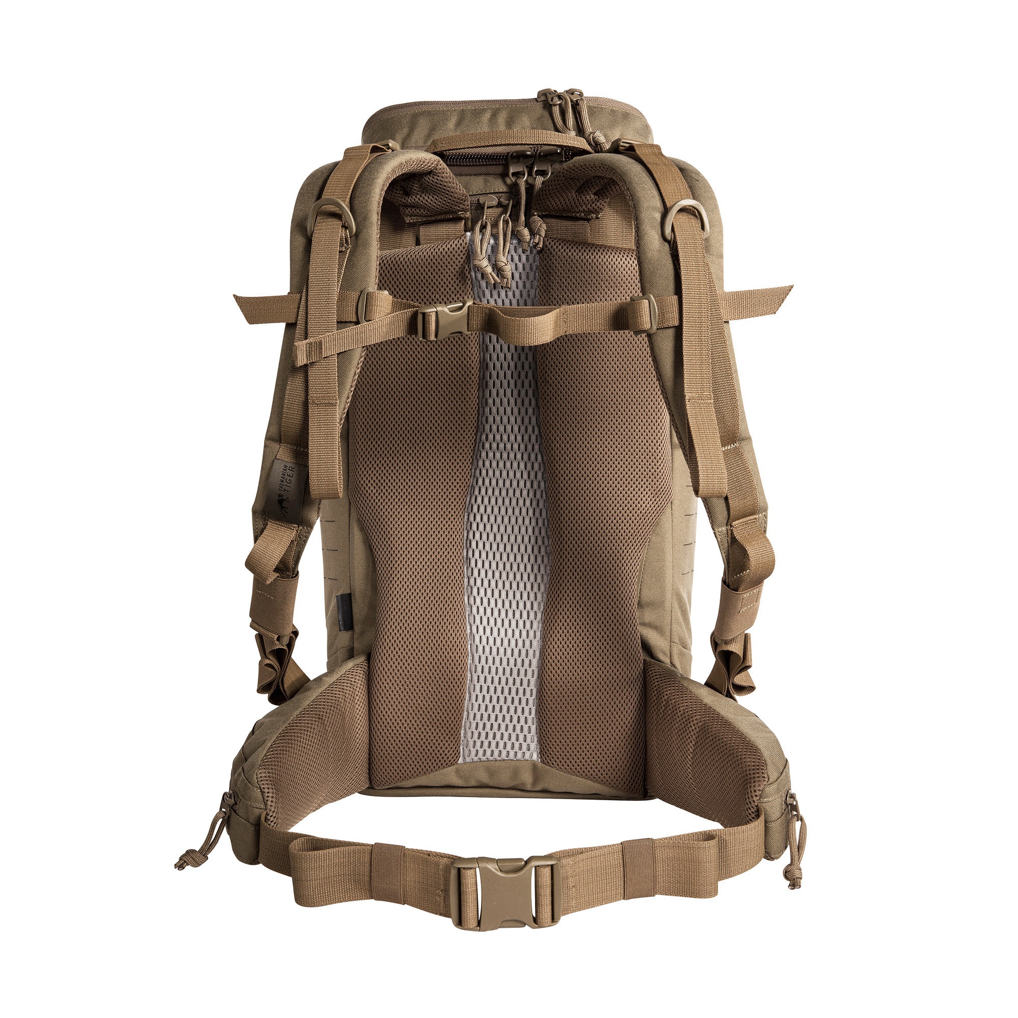 Le sac à dos est doté d’une poche sur le rabat et d’une poche MOLLE découpée au laser sur les côtés et à l’avant. L’ouverture avant du sac à dos se relève complètement. L’intérieur est doté de sections auto-agrippantes pour des fonctionnalités personnalisées. Les stabilisateurs sont amovibles. Livré avec trois pochettes à accessoires auto-agrippantes et un étui à arme auto-agrippant.