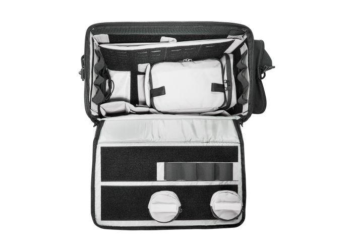 TT MODULAR RANGE BAG – Sac de tir Le TT Modular Range Bag est un sac développé pour des tireurs, par des tireurs. Il dispose d’un système réglable et amovible, d’un compartiment principal et de poches intérieures pour munitions et accessoires. La grande poche extérieure est munie d’un panneau MOLLE – Velcro® ainsi que d’un espace supplémentaire pour votre équipement. 3 autres poches supplémentaires sont également présentes. Les compartiments principaux du sac sont munis de fermetures à glissière verrouillables. L’extérieur du sac est équipé de systèmes MOLLE Laser-Cut pour l’ajout de poches. La grande poche d’accessoire mesure 24 x 16 x 15 cm pour 90g. La pochette plate pour accessoires mesure quant à elle 19 x 16 x 3 cm pour 55 g. Enfin les 2 pochettes rondes pour accessoires ont pour dimensions Ø8 x 2,5 cm pour un poids de 25g chacune.