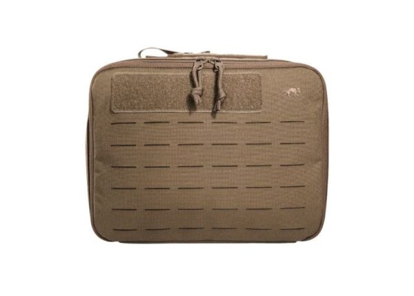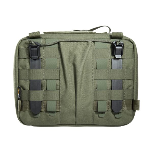 Le sac a une bandoulière amovible et sur le dos il est doté du nouveau système de dégrafage rapide Tasmanian Tiger. Il peut être positionné au dos d’un porte-plaques ou sur un sac à dos.
