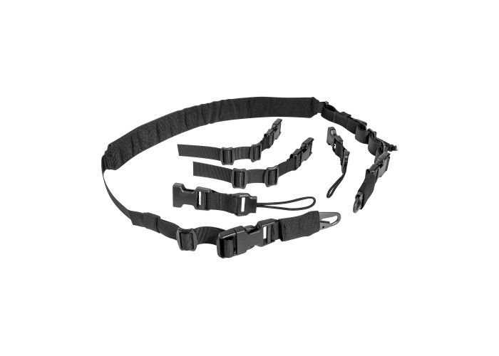 Sangle de transport rembourrée offrant diverses options de transport et de fixation. La boucle enfichable permet d’y enfiler un crochet pour arme, une sangle pour œillets ou un cordon de 3 mm pour appareil photo (deux cordons de 3 mm de diamètre chacun).